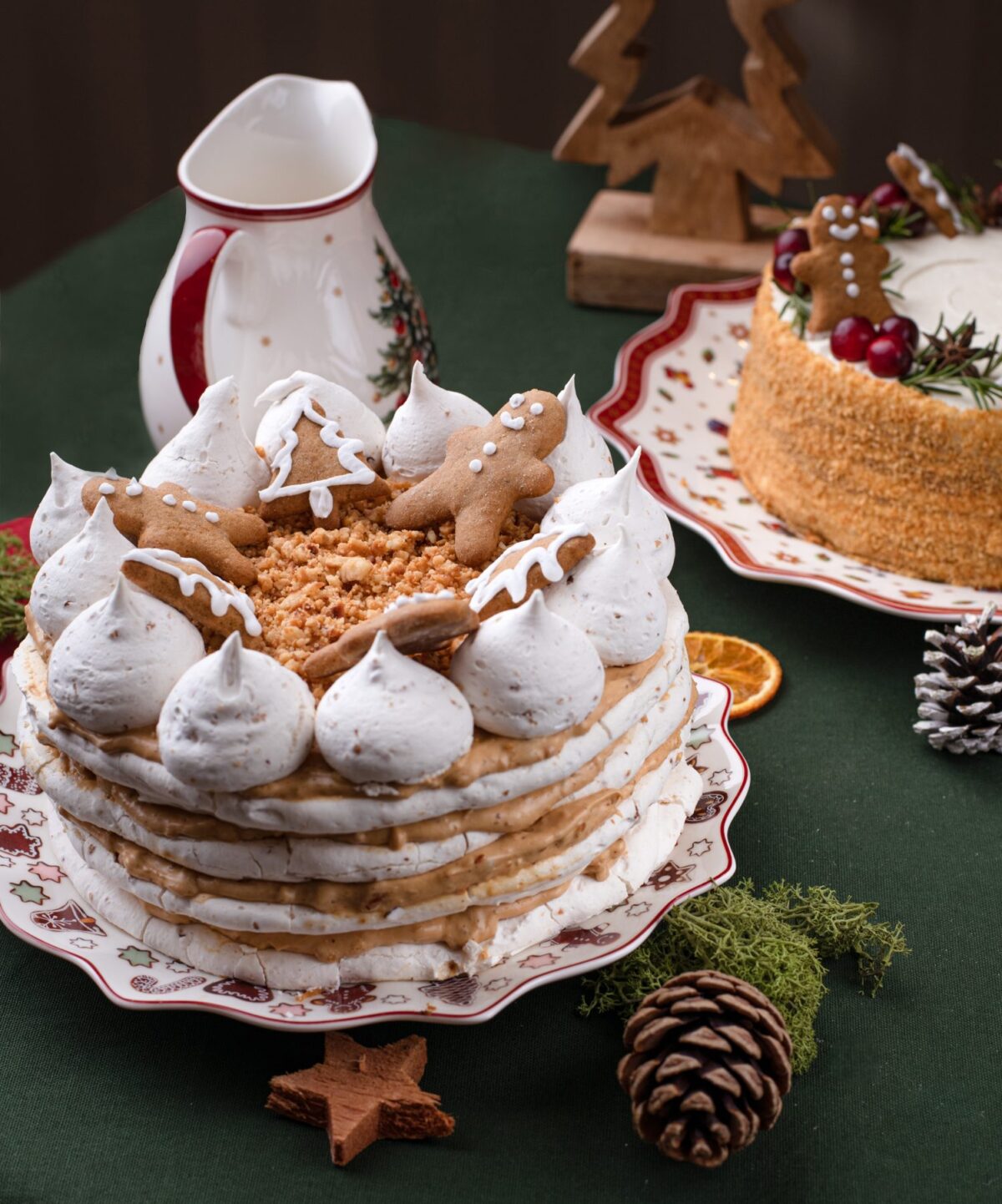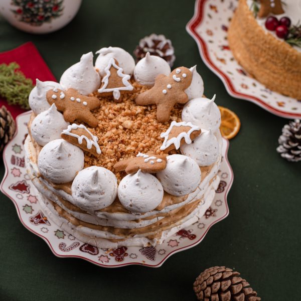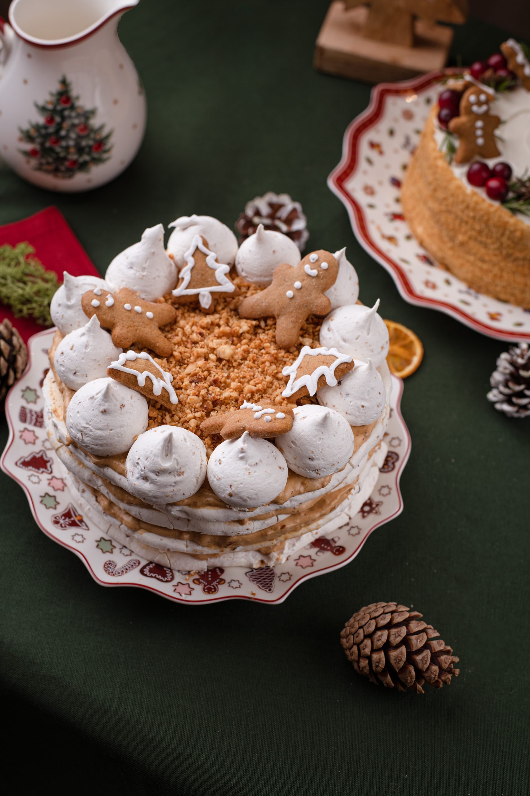 Morenginiai lazdyno riešutų biskvitai peterpti švelniu karameliniu kremu, pagardintu austrišku romu.