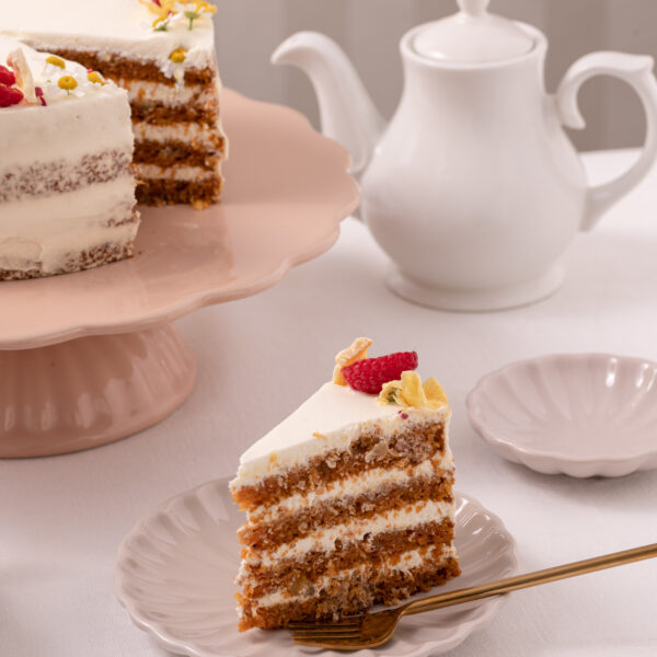 Morkų ir riešutų biskvitai pertepti su lengvu maskarponės ir apelsinų kremu.