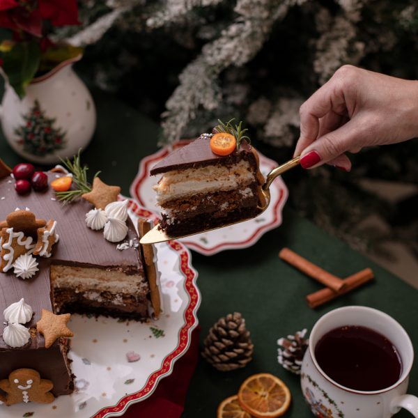 Juodojo ir baltojo belgiško šokolado, pagardintas lazdyno riešutų kremu ir karameliniais trapučiais.